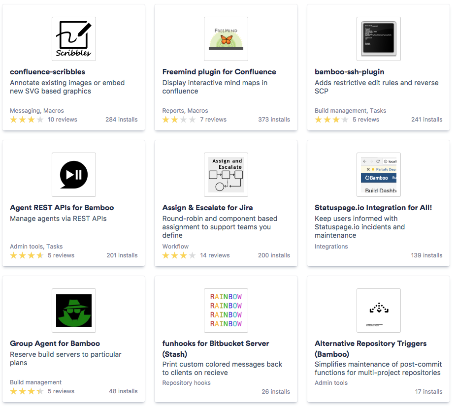 Multiple plugins used by thousands of teams that provide enhanced functionality of Atlassian’s core products (primarily JIRA and Bamboo) to enrich CI/CD capabilities, DevOps automation, or productivity. Functionality spans user interface, web services and persistence.